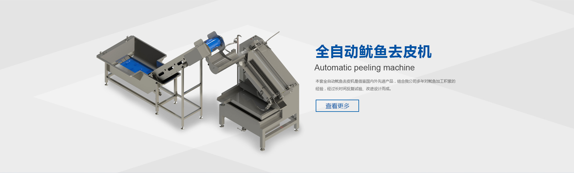 welcome位于美丽的海滨城市——烟台,成立于2006年,厂房2000余平方,专注于食品加工设备研发与制造。拥有数控剪板、数控折弯、数控加工中心等高精密技工设备,同时拥有一个有资质、有经验、有责任感团队,以工匠精神保证产品加工质量。主要产品有:自动鱿鱼去皮机(扒皮机)、手动鱿鱼去皮机(扒皮机)、鱿鱼开片机、鱿鱼切圈机、鱿鱼压花机、鱿鱼解冻机、鱿鱼自动搅拌装置、鱿鱼包冰衣机、鱿鱼切边机、气泡清洗机、鱿鱼去内脏加工输送线、鱿鱼去内膜加工输送线、以及成套输送成套生产线